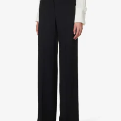 - Regular fit, high rise, straight leg, structured waistband, two welt pockets at front, darts at back, pressed centre creases