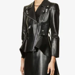 Alexander McQueen Frock-detail Peplum Leather Biker Jacket