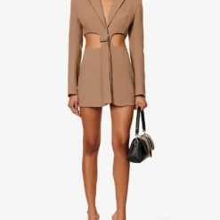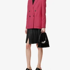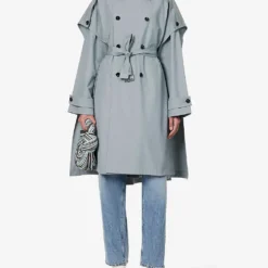 - Fitted, collar, long sleeves, panelled construction, silver-toned hardware, zip fastenings at cuffs, two zipped pockets at chest, zipped pocket at side, two popper-fastened straps at front and back, cropped at front, flared pleated hem at back, fully lined