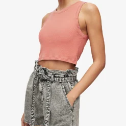 - Round neck, thick straps, sleeveless, cropped, tonal stitching