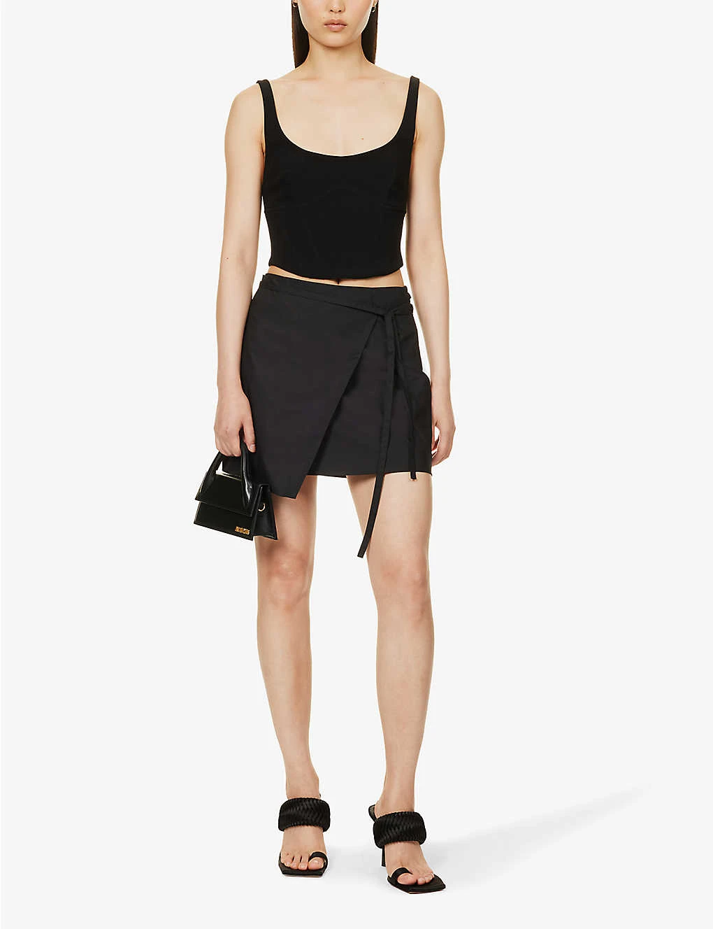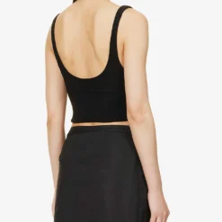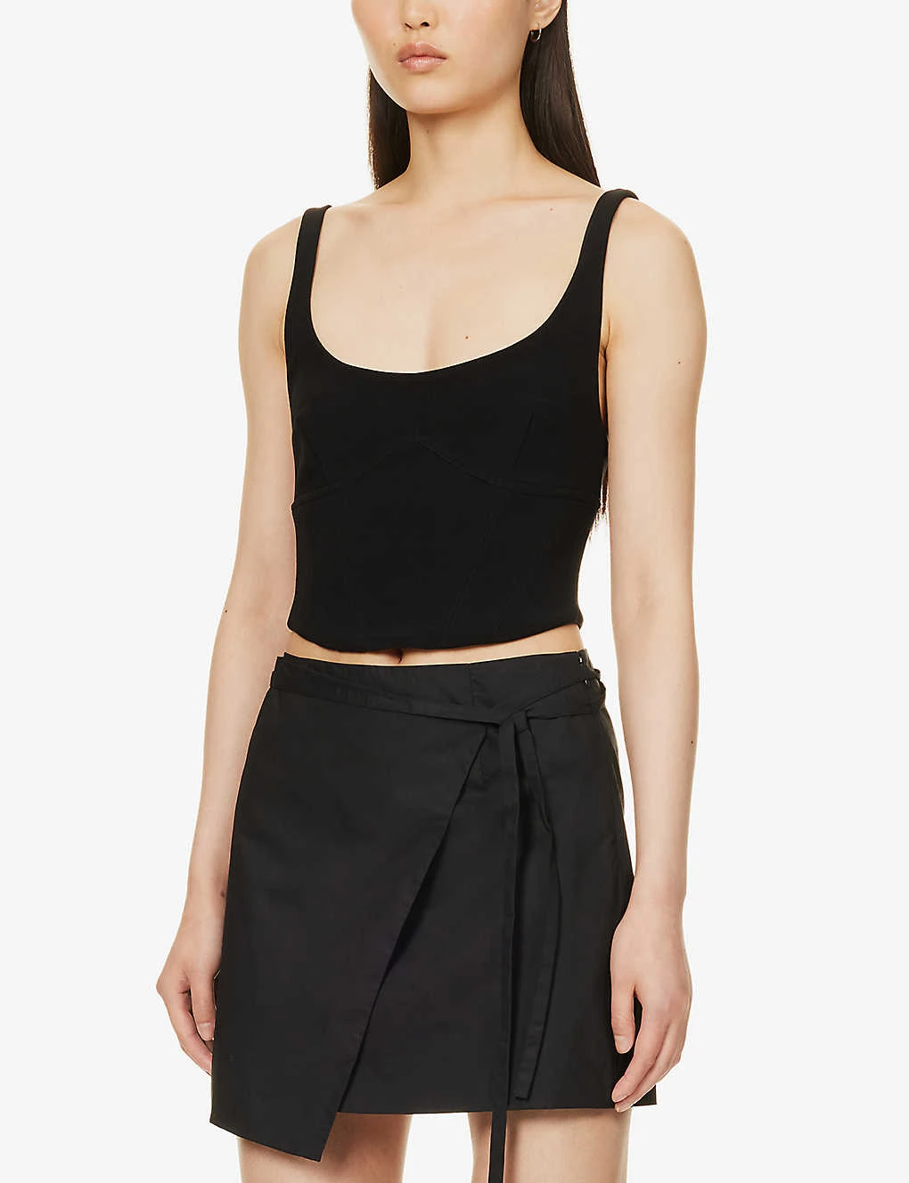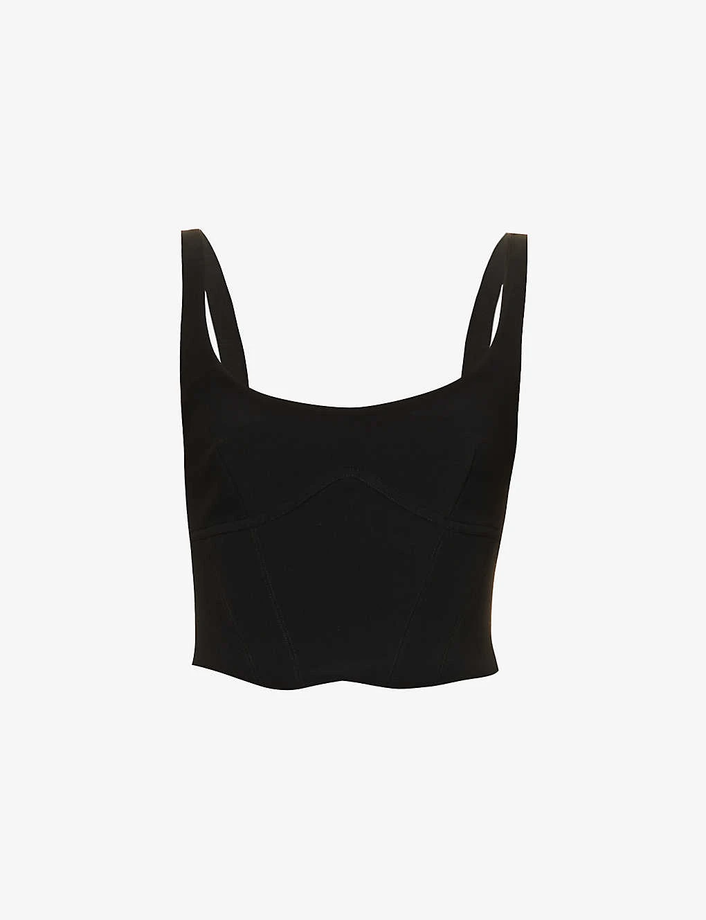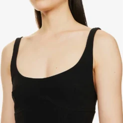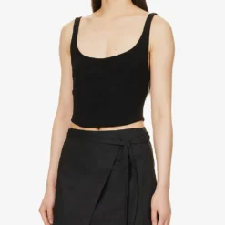 - Slim fit, scoop neckline, sleeveless, corset design, crepe texture, cropped