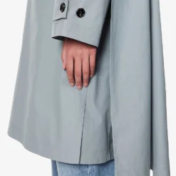- Regular fit, double breasted, cape overlay, long sleeves, buttoned strap at sleeve hems, belted waist, two slip pockets at front, contrast buttons