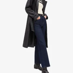 - Regular fit, double-breasted style, notched lapels, belted waist, side pockets