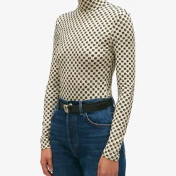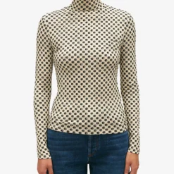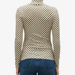 - Turtleneck, long sleeves, fitted, all-over monogram CP print
