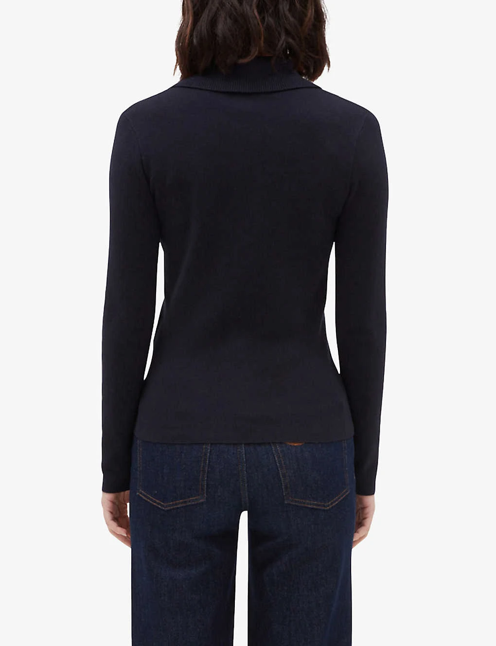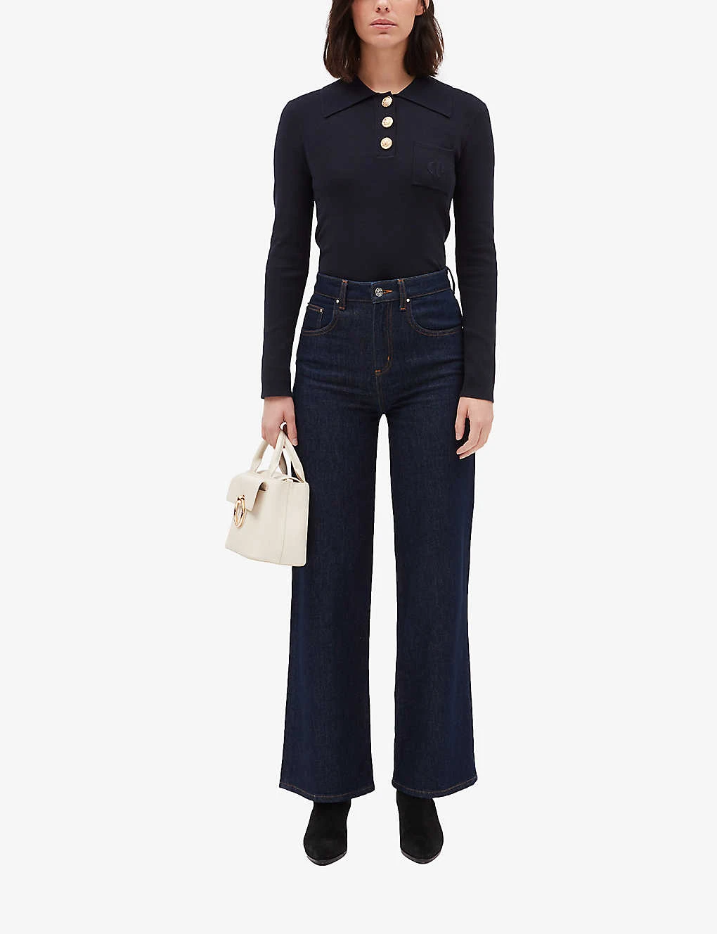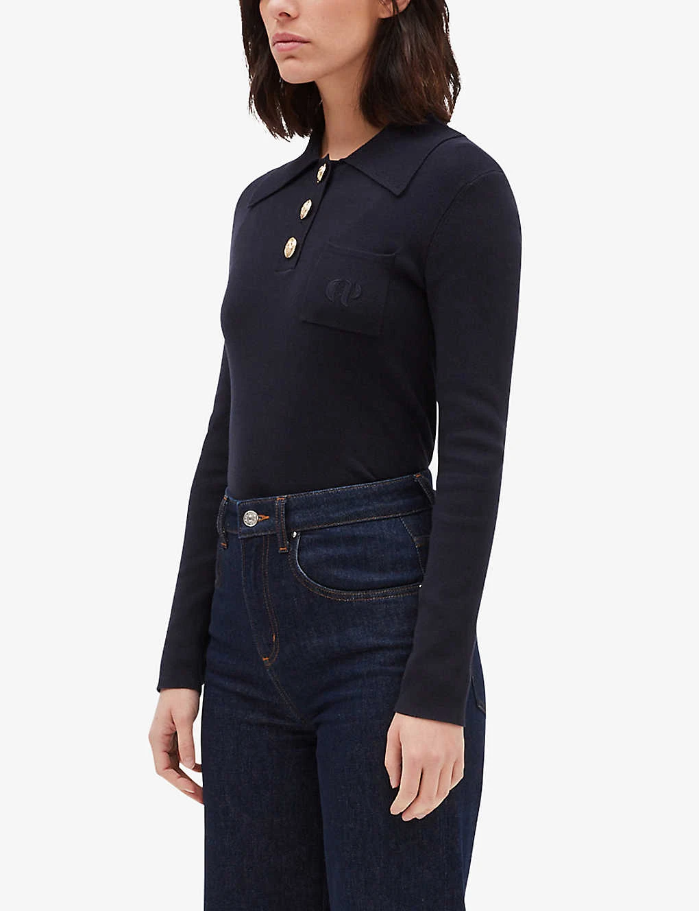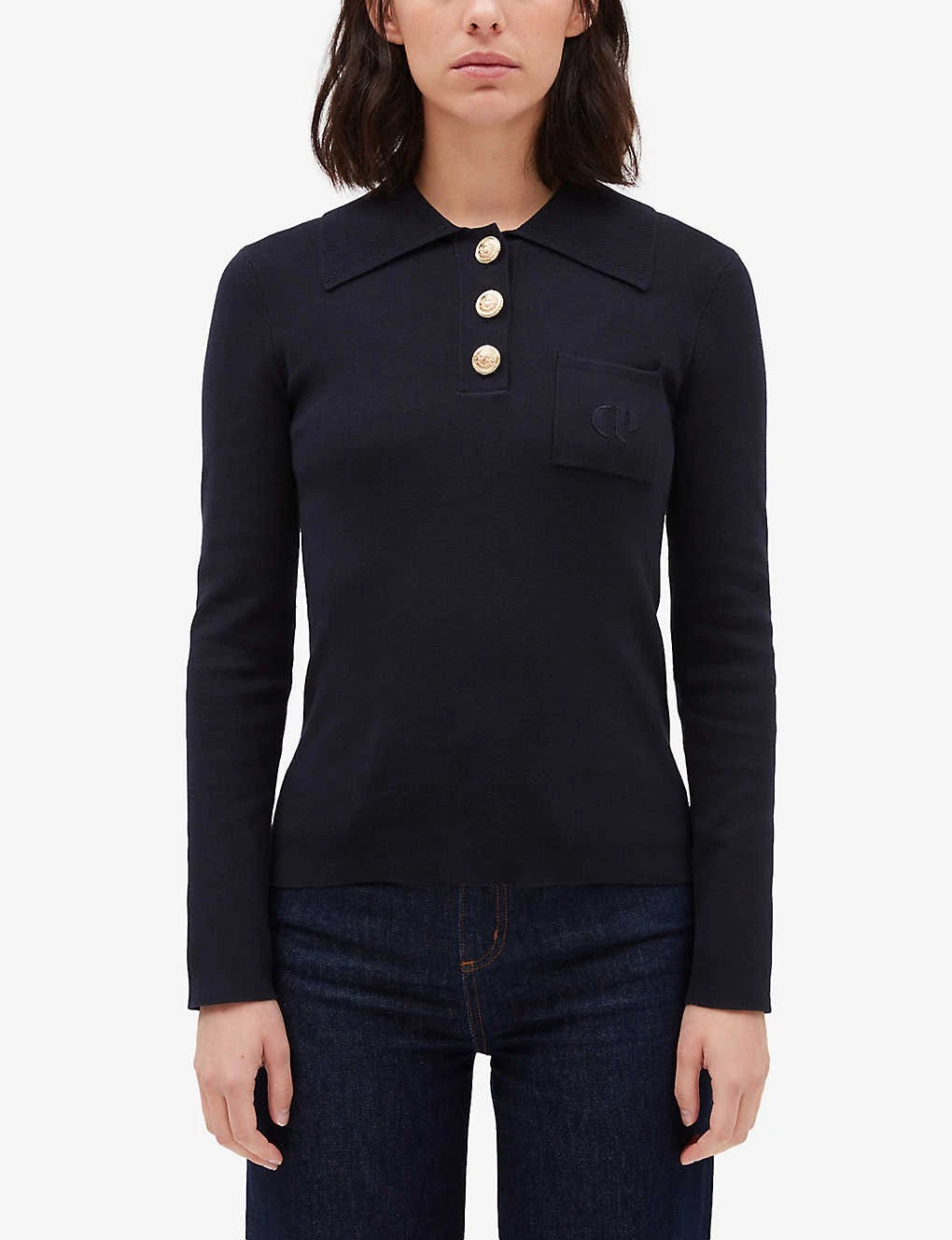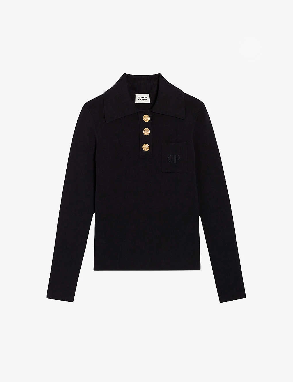 CLAUDIE PIERLOT Magnesa Logo-embroidered Collared Stretch-cotton Blend Jumper