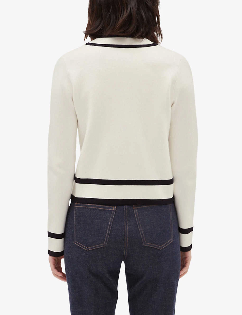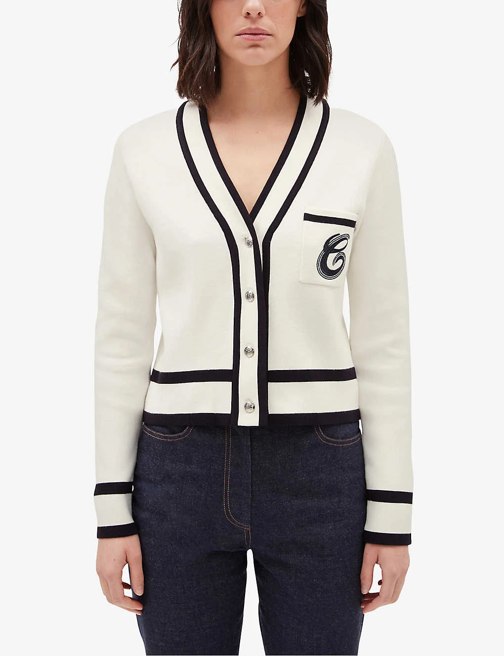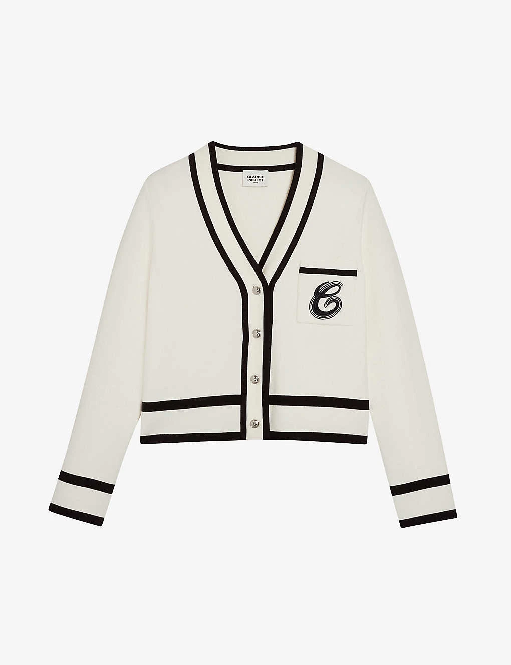 CLAUDIE PIERLOT Melusino Logo-embroidered Contrasting-trim Knitted Cardigan