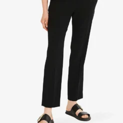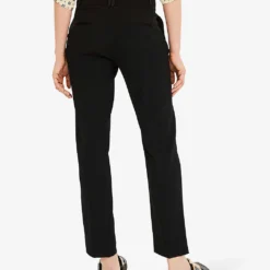 - Mid rise, straight leg, front and back centre creases, belt loops, side pockets, back welt pockets, tailored, fully lined
