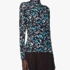 - Slim fit, high neck, long sleeves, all-over floral pattern, jersey texture