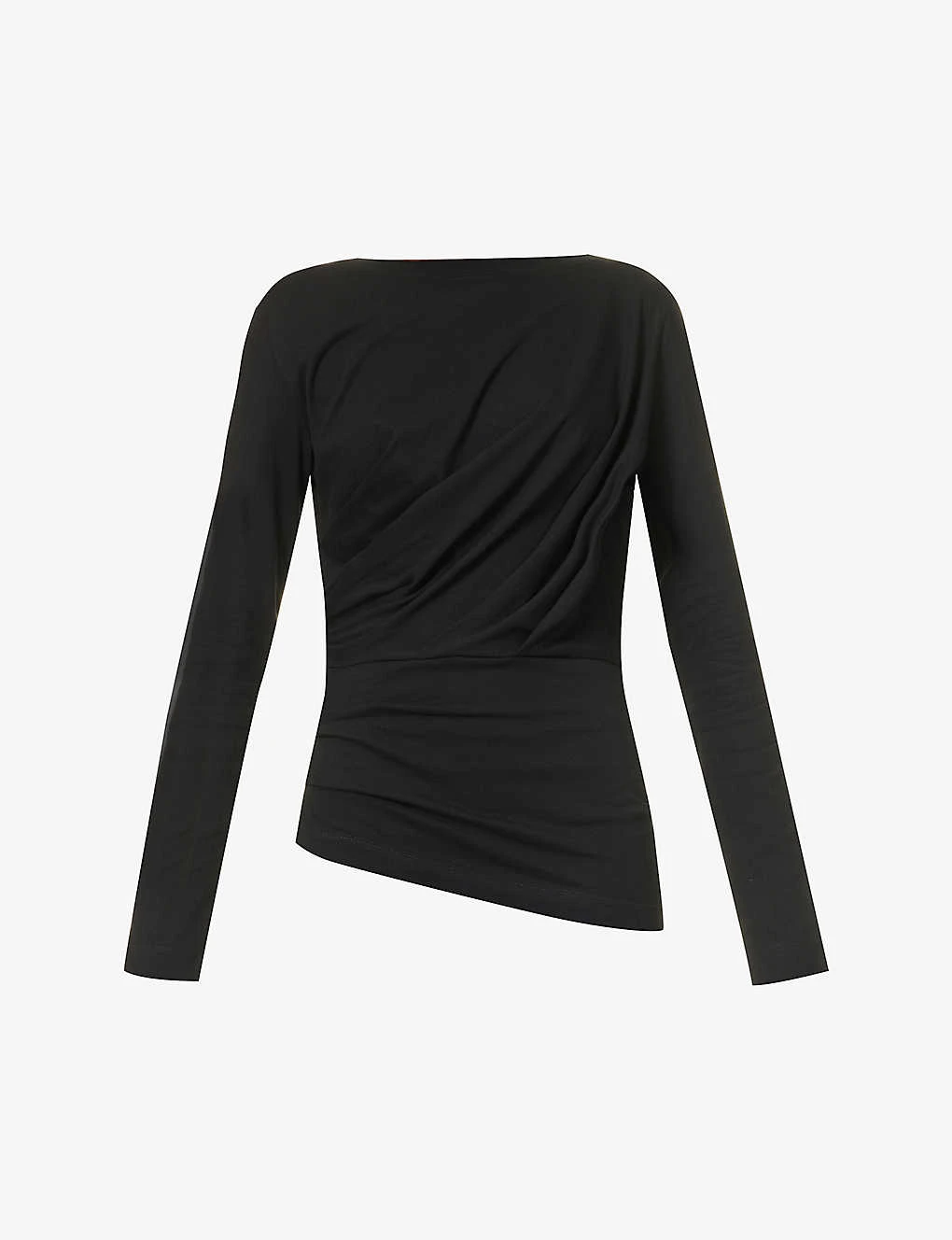 - Regular fit, boat neckline, long sleeves, pin-tucked pleats at front