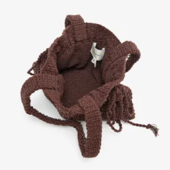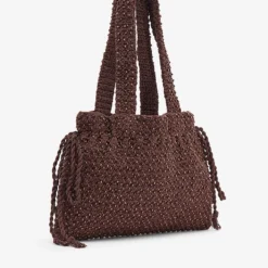 - Rectangular shape, double top handles, drawstring at sides, all over crochet pattern, all over beads embellishment, one main compartment, internal brand tab, fully lined