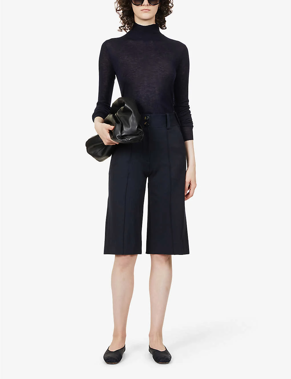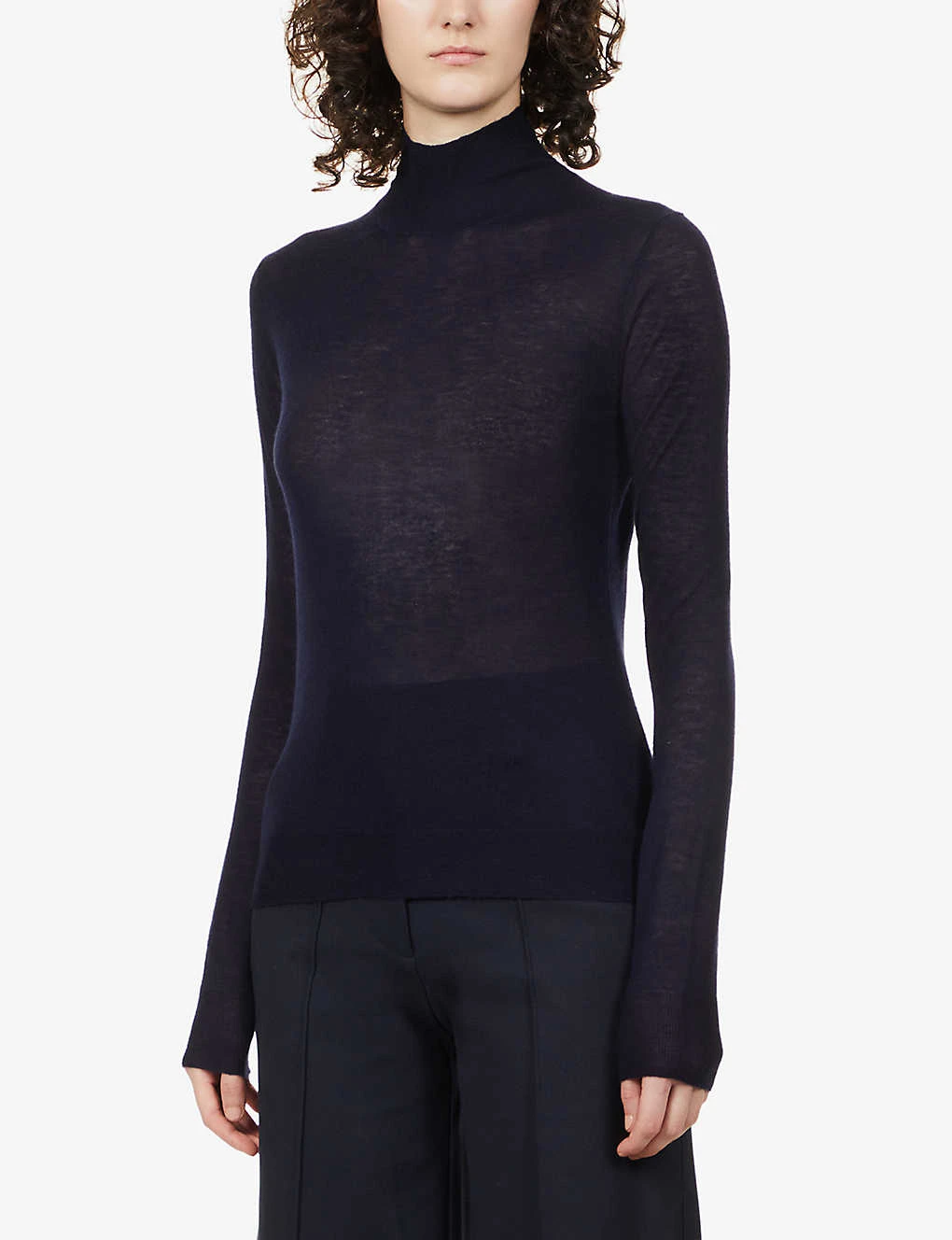 - Regular fit, turtleneck, long sleeves, semi-sheer, fine knit, exposed seams, ribbed trims