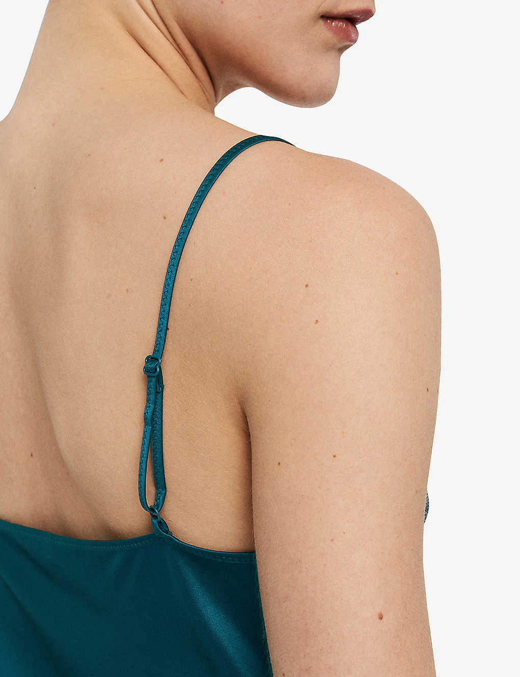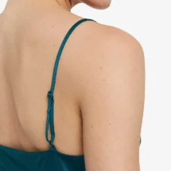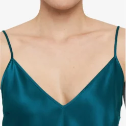 - Regular-fit, V-neck, shoulder straps, darts at chest, all-over satin texture