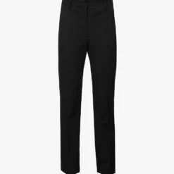 - Regular fit, straight leg, mid-rise elasticated waist, two slip pockets at front, pressed centre creases