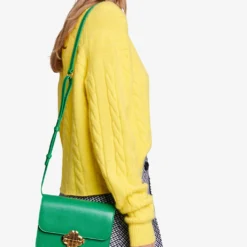 - V-neck, dropped shoulders, long sleeves, all-over cable knit, ribbed trims