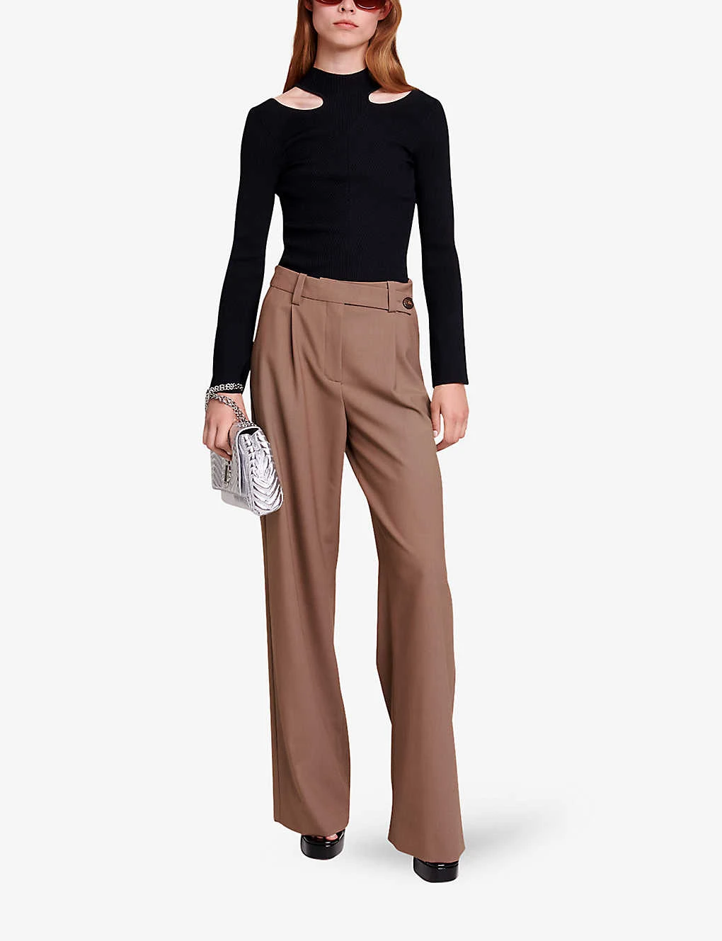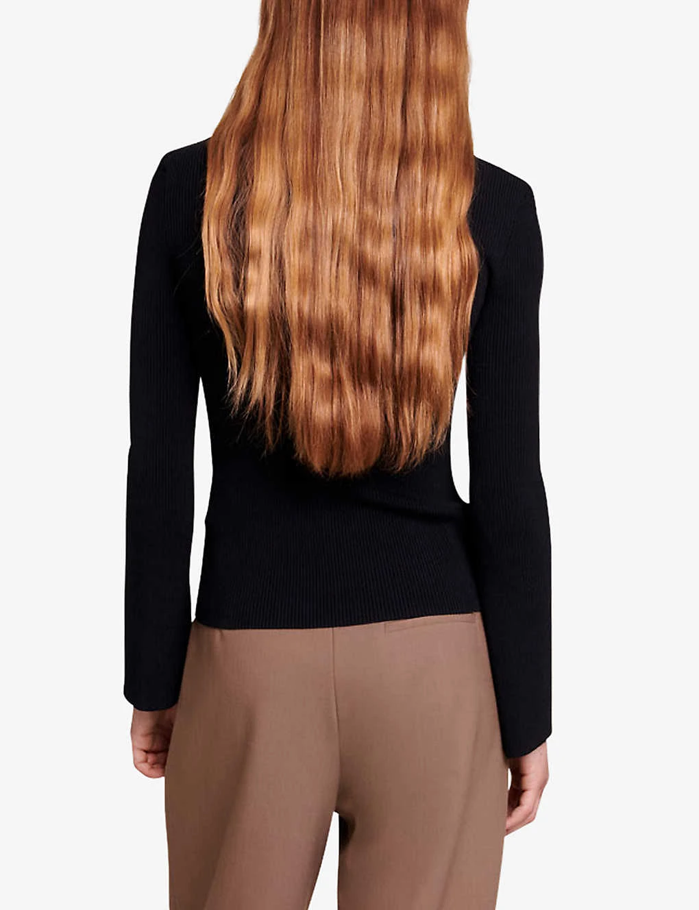 Maje Moseanna Cut-out Long-sleeve Stretch-knit Jumper