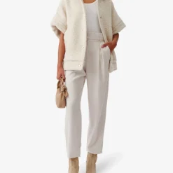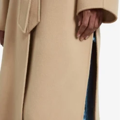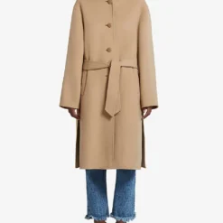 - Relaxed fit, waist belt, side slits, deconstructed shoulders