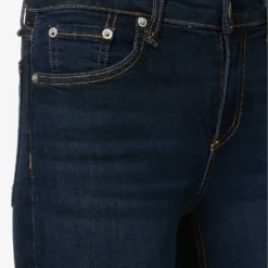 - Skinny fit, mid-rise, slim leg, ankle grazer, structured waistband with belt loops, five pockets, curved yoke at back, brand embroidery at back, mid-wash, contrast stitching, branded silver-toned hardware