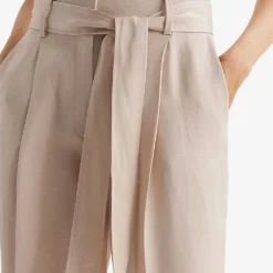 - High-rise, tapered leg, self-tie belt at the waist, 2 pockets at the side