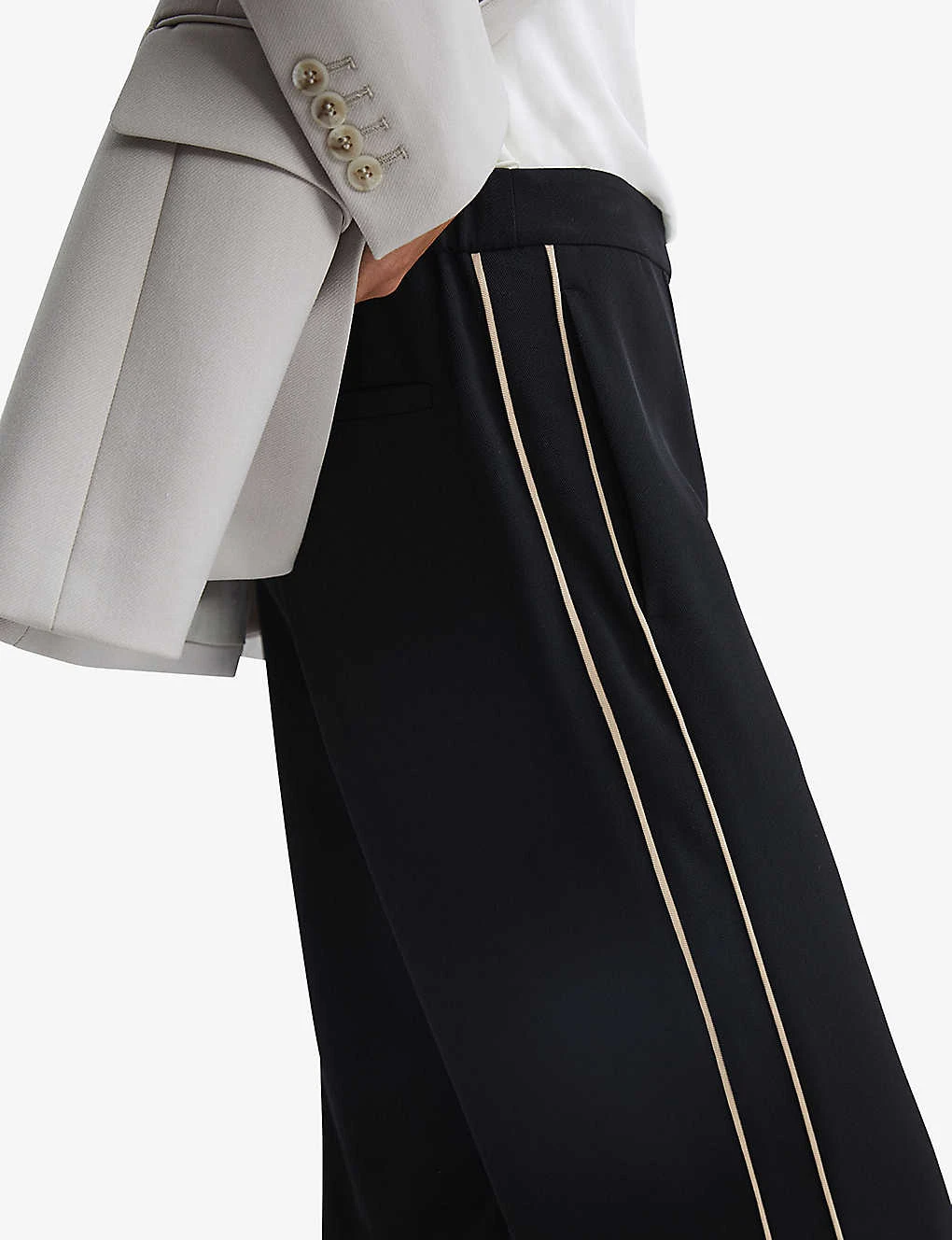 Reiss Theo Side-stripe Wide-leg Mid-rise Woven Trousers