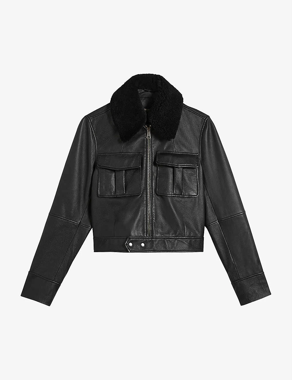 Ted Baker Basile Shearling-collar Leather Harrington Jacket