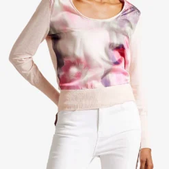 - Regular fit, round neckline, long sleeves, graphic-print at front, contrasting sleeves, hem and back, ruched detailing at shoulders, elasticated hem