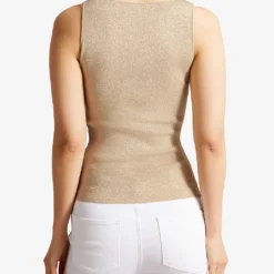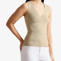 - Fitted, V-neck, sleeveless, all-over metallic effect, ribbed trims