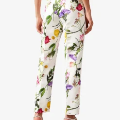 - Tapered leg, high rise, all-over floral print, centre pressed creases, two side slip pockets