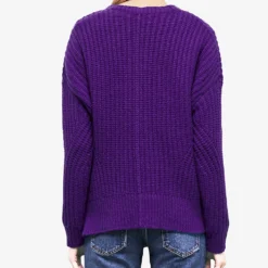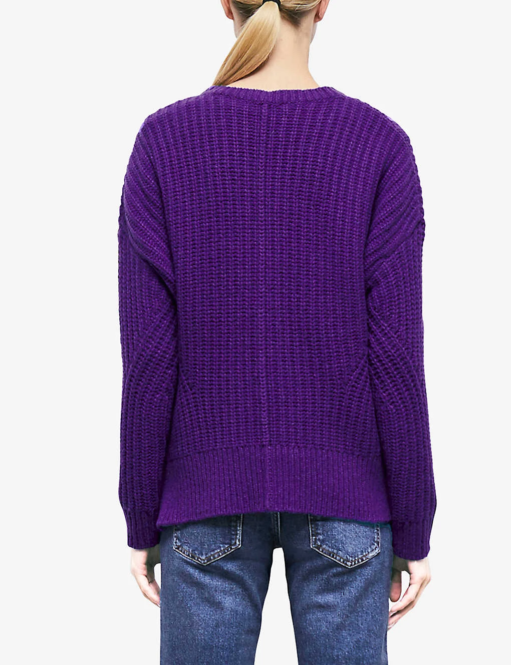 - Boat neck, long sleeves, knitted texture, ribbed trims, straight hem