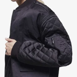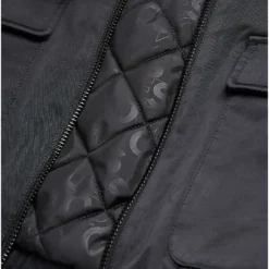- Stand collar, detachable padded sleeves, pocket at sleeve, flap pockets at front, ribbed trims