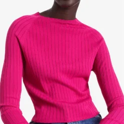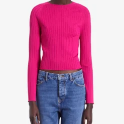 - Round neck, long sleeves, ribbed finish, form-fitting silhouette