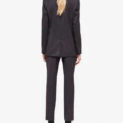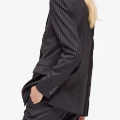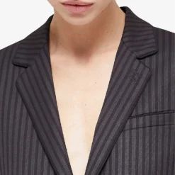- Slim fit, notched lapel, stripe pattern, 2 pockets at the side, single-breasted silhouette