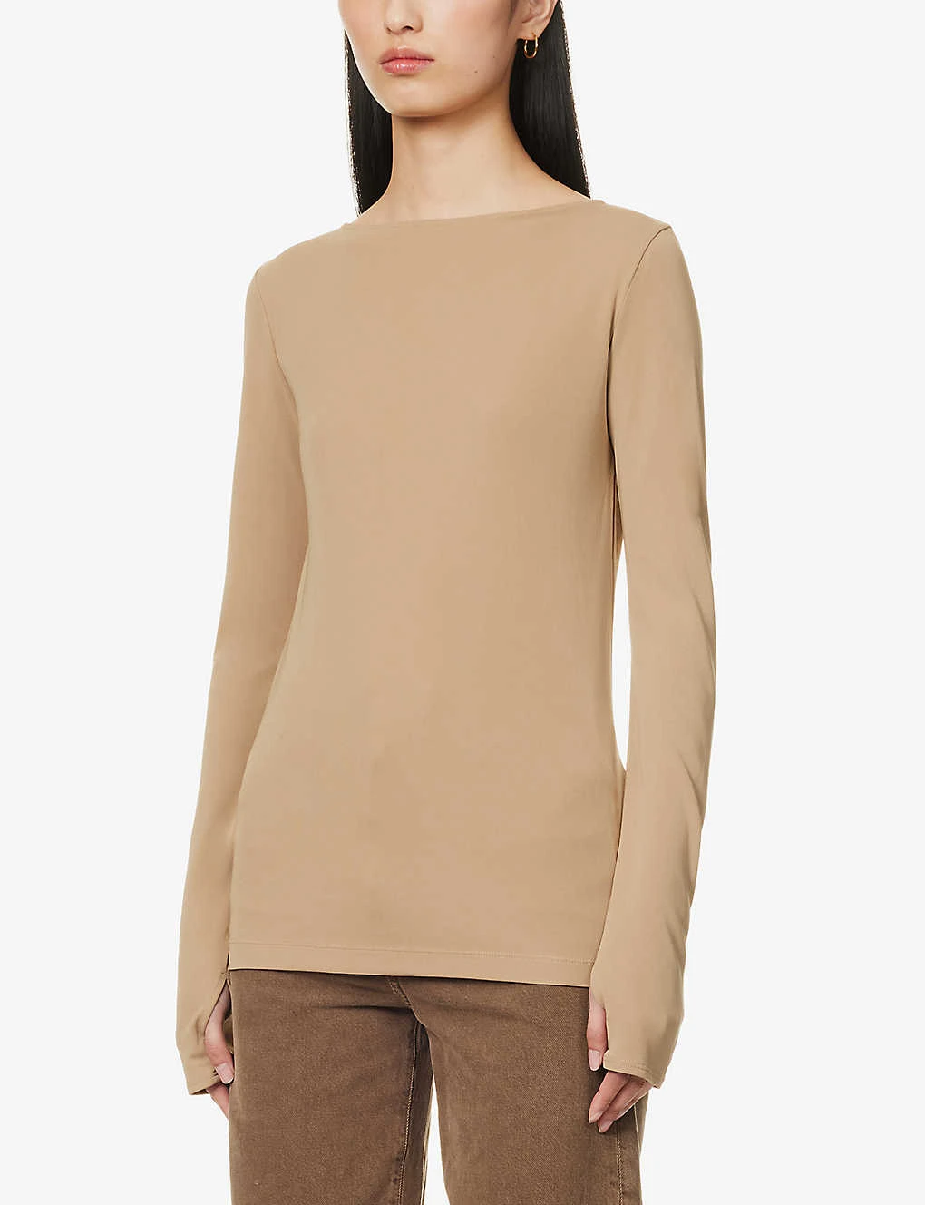- Regular-fit, scoop neck, long sleeves