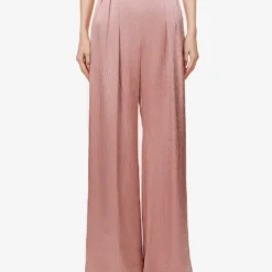 - Regular fit, high rise, wide leg, structured waistband, two slip pockets at front, pleats at front, unhemmed