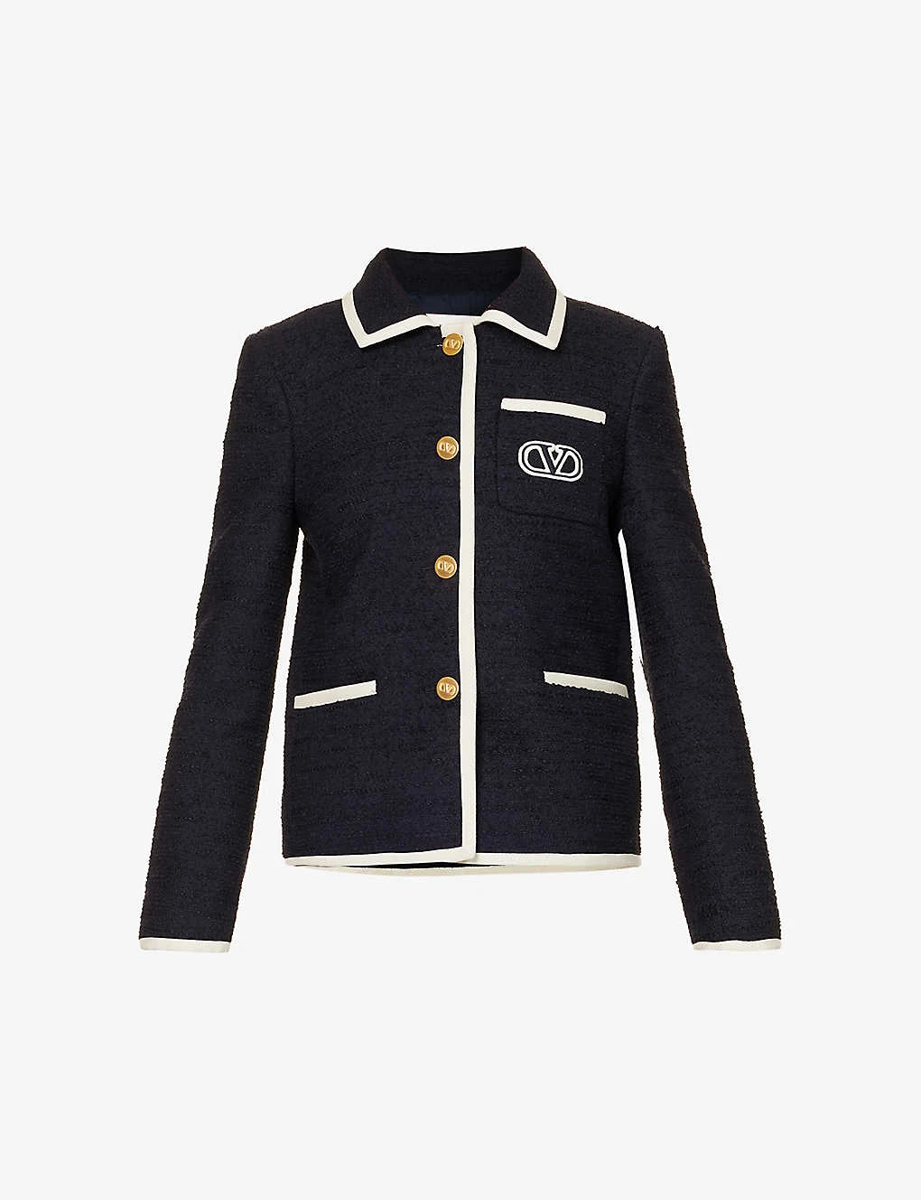 Valentino Brand-embroidered Contrast-trim Regular-fit Cotton-blend Jacket