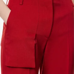 - Regular fit, mid-rise, straight leg, structured waistband, two slip pockets at front, darts at back, flap pocket at back, pressed centre creases