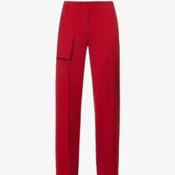 - Regular fit, mid-rise, straight leg, structured waistband, two slip pockets at front, darts at back, flap pocket at back, pressed centre creases