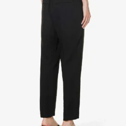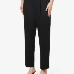 - Regular fit, mid-rise, tapered leg, structured waistband with belt loops, two slip pockets at front, darts at back, two welt pockets at back, pressed centre creases