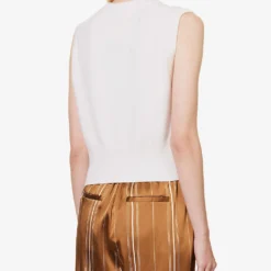 - Regular fit, cropped, V neck, sleeveless, all over knitted, ribbed trims, elasticated hem