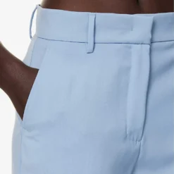 - Relaxed fit, mid-rise, straight leg, belt loops, two slip pockets at front, two buttoned pockets at back, pressed creases at front and back, straight cuffs
