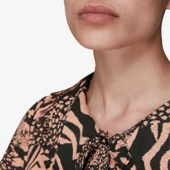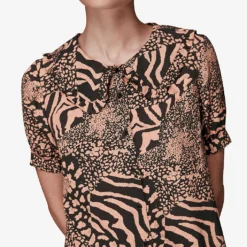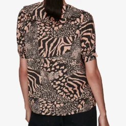 - Animal-print, short sleeves, puffed sleeves, scoop neck, tonal stitching