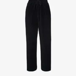 - Elasticated waist, drawstring fastening, straight leg, side pockets, corduroy texture, side-split detail at the hem