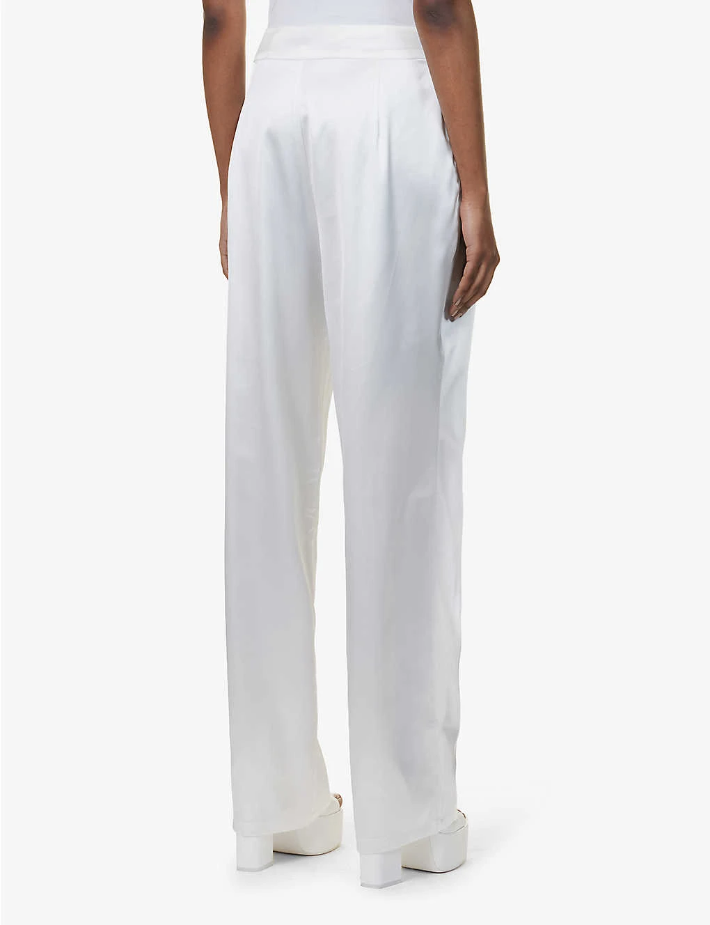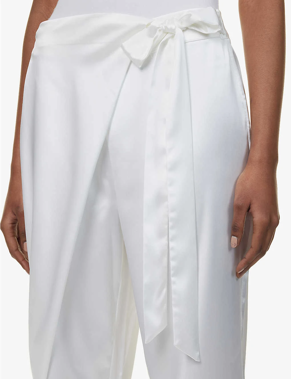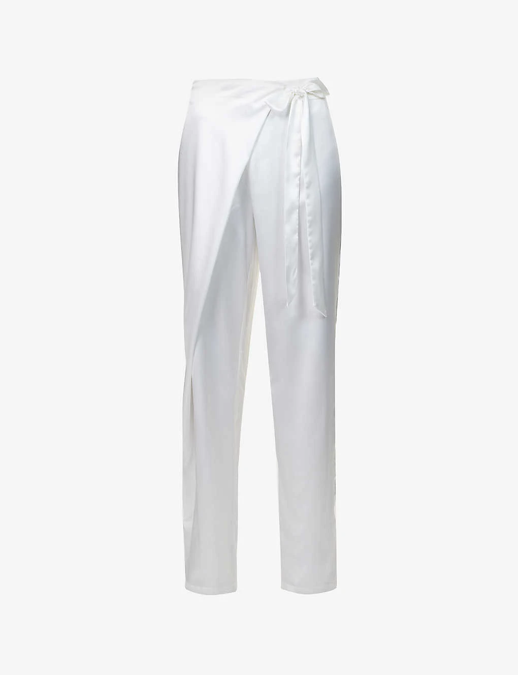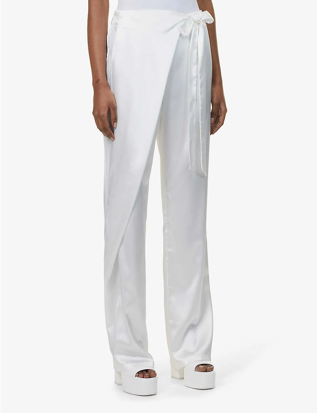 Wrap-over Structured-waist Straight-leg High-rise Stretch-satin Trousers