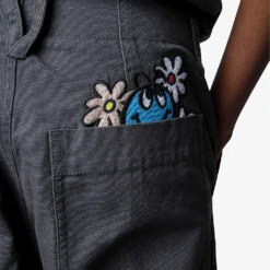 - Regular fit, straight leg, mid rise, embroidered patches, cropped, four pockets