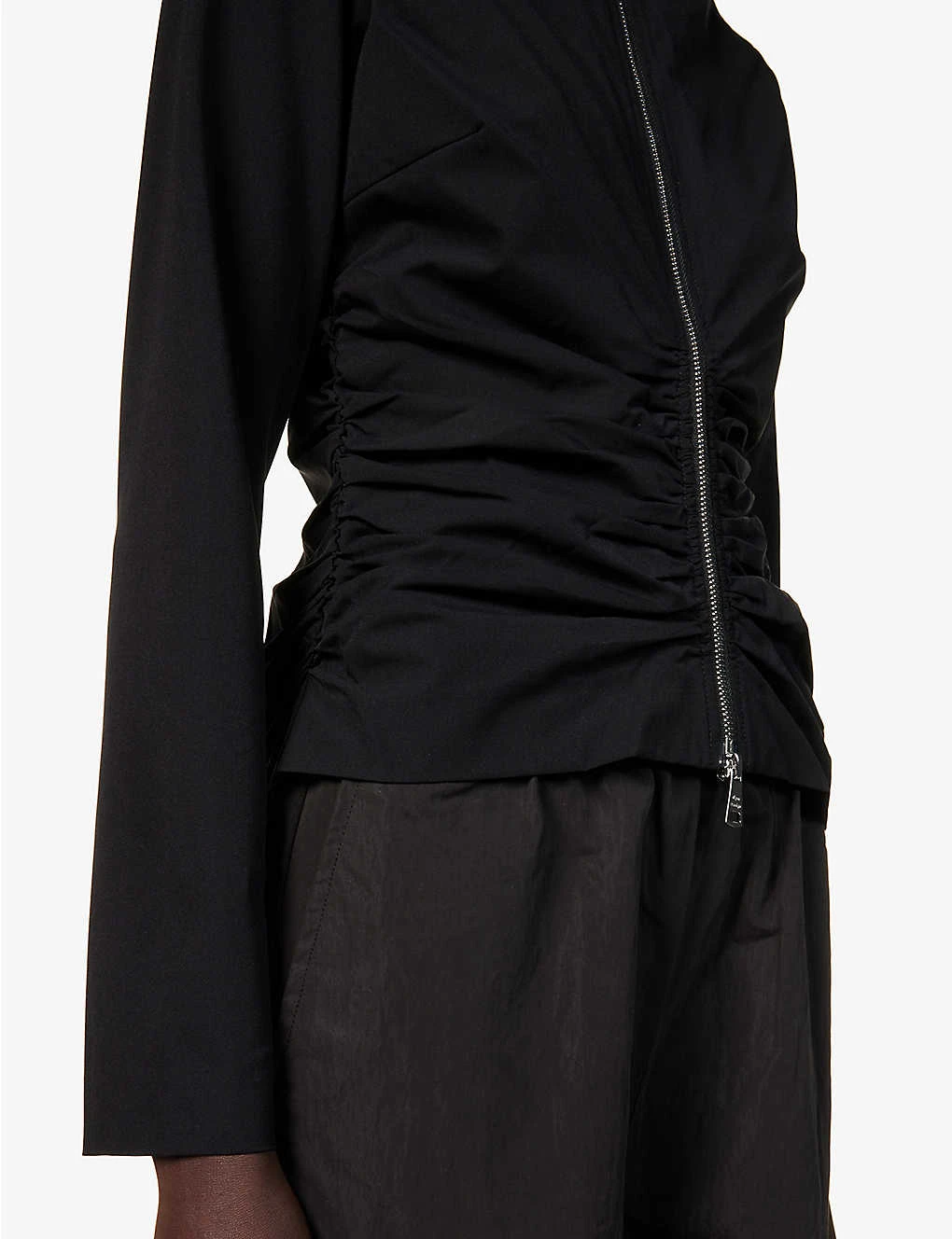Zipper Pleated Recycled Polyester-blend Top